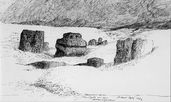 "Illustration zu Lem: ("Der Unbesigbare"), Federzeichnung 1976